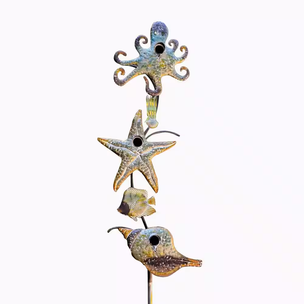 Zaer Ltd. International 95.5 in. Tall Coastal Style Birdhouse Stake - Octopus and Starfish