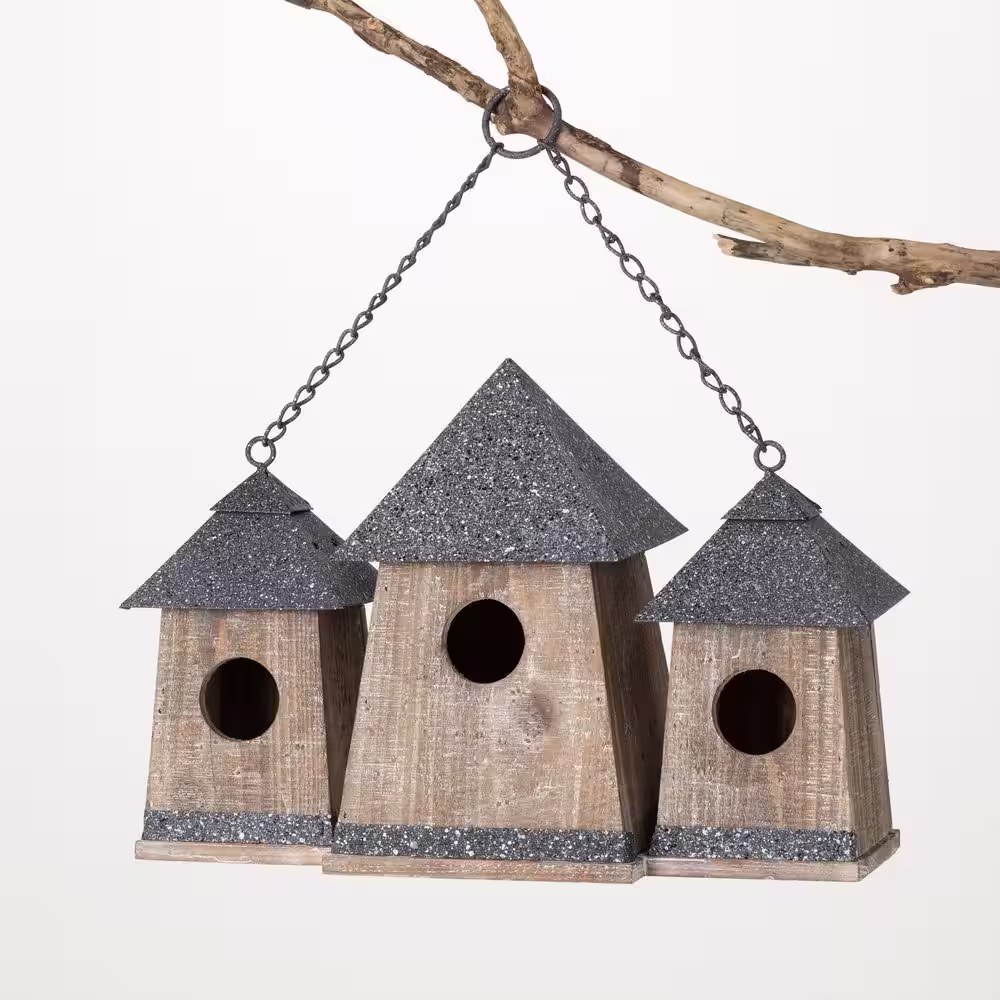 SULLIVANS 10.25 in. Gray Wood Triple Birdhouse Condo