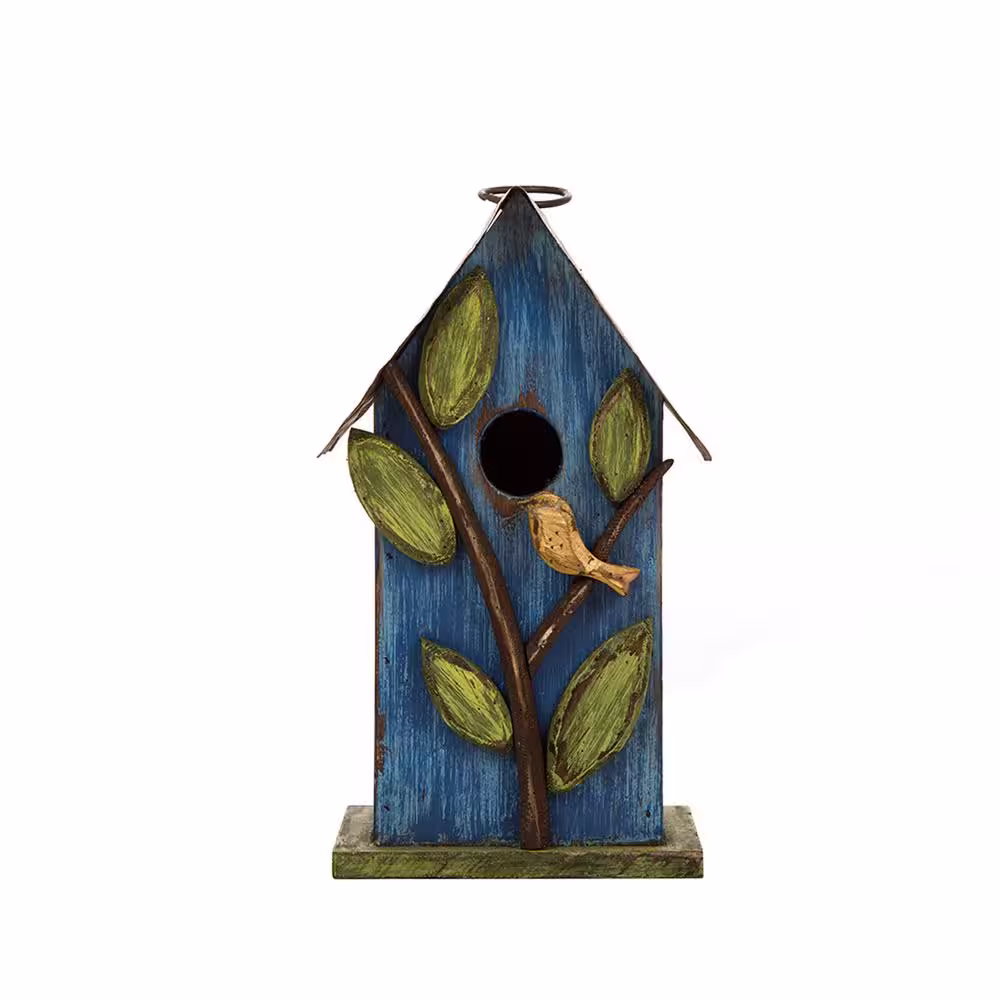 Glitzhome 9.75 in. H Distressed Solid Wood Birdhouse with Leaves