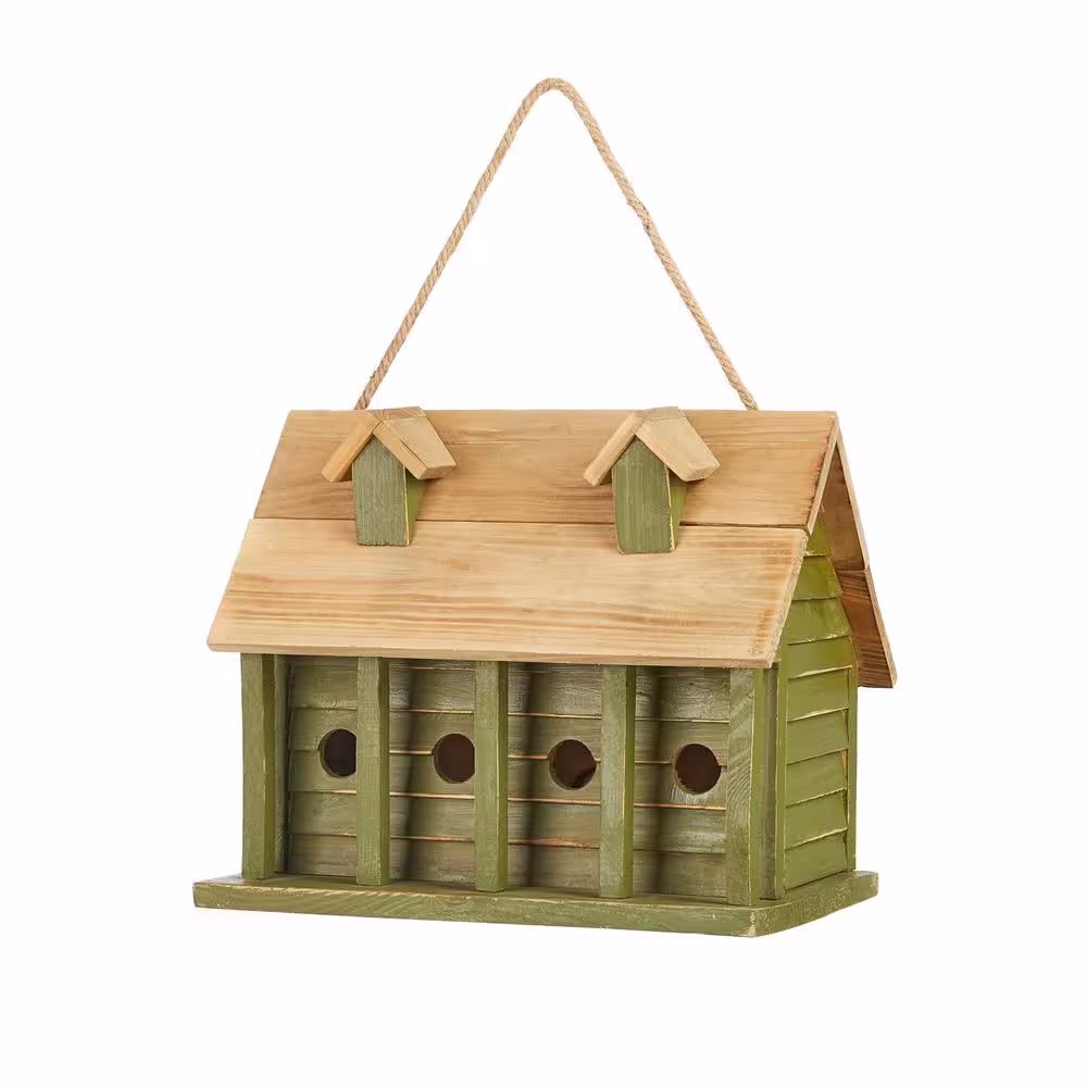 Glitzhome 14.25 in. L Wood Green Garden Distressed Birdhouse