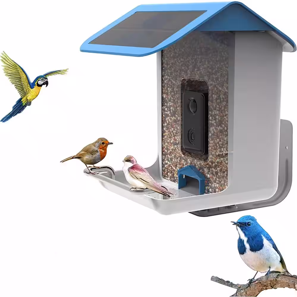 None Smart Bird Feeder with Solar Roof, 1080P HD Camera, AI Identify Bird Species, Wi-Fi Connection (Include 16G SD Card)