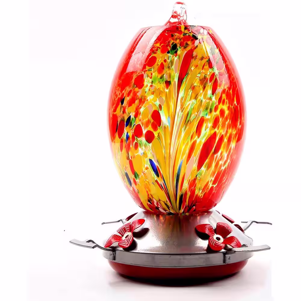 Afoxsos Garden Hummingbird Feeder with Perch - Hand Blown Glass
