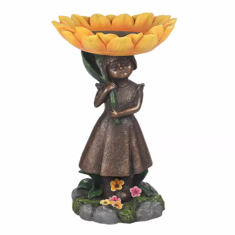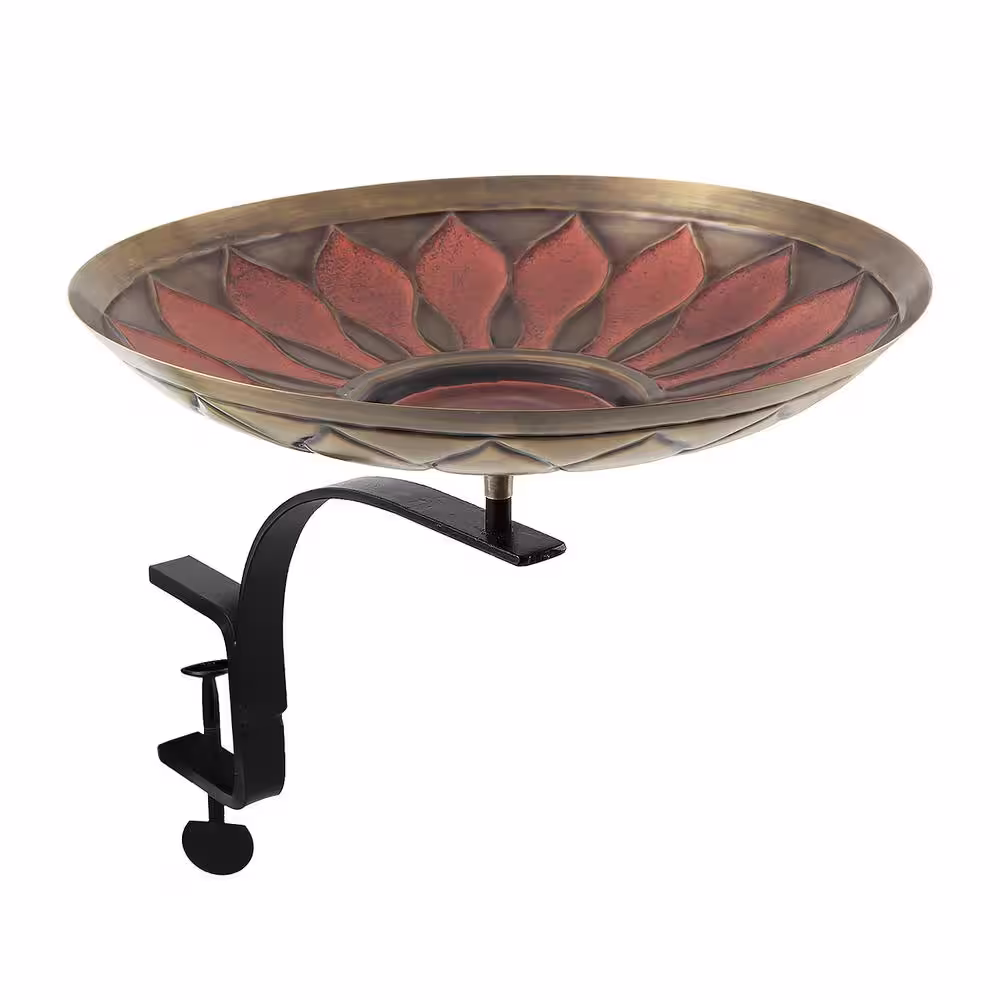 Achla Designs 16 in. W Antique and Patina Red African Daisy Birdbath with Rail Mount Bracket