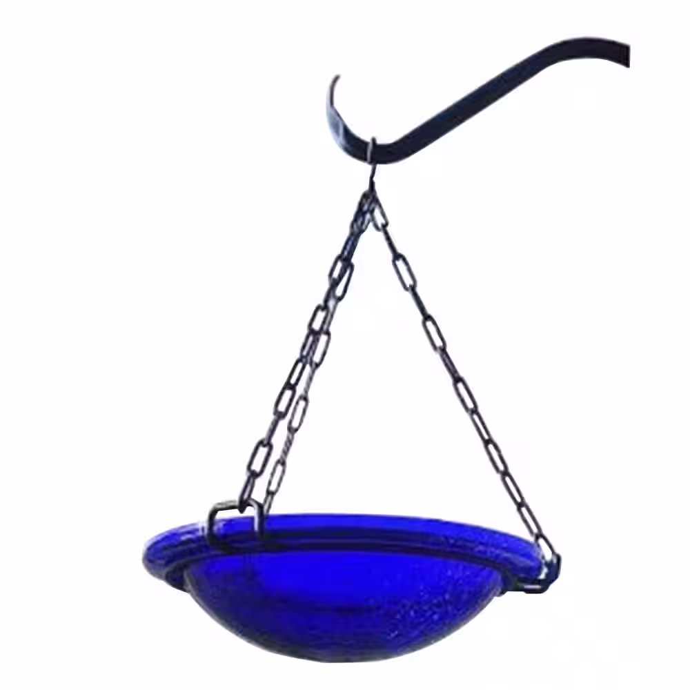 Achla Designs 12.5 in. Tall Cobalt Blue Crackle Glass Hanging Birdbath Bowl