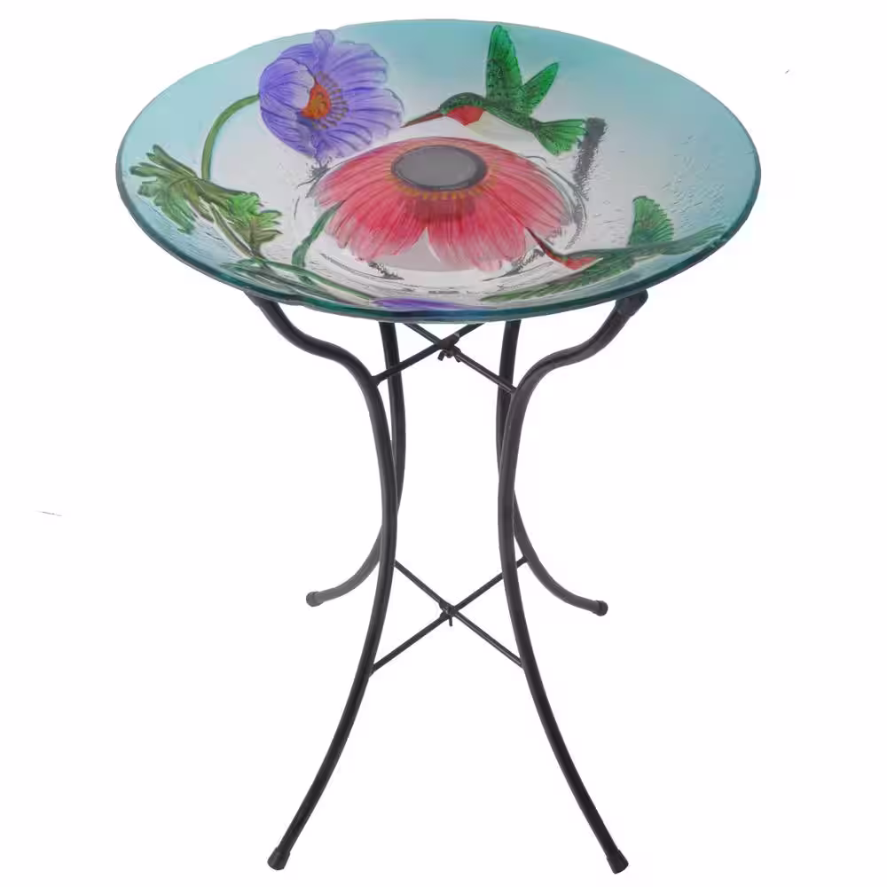 Teamson Home 18 in. Glass Hummingbird Outdoor Fusion Solar Birdbath