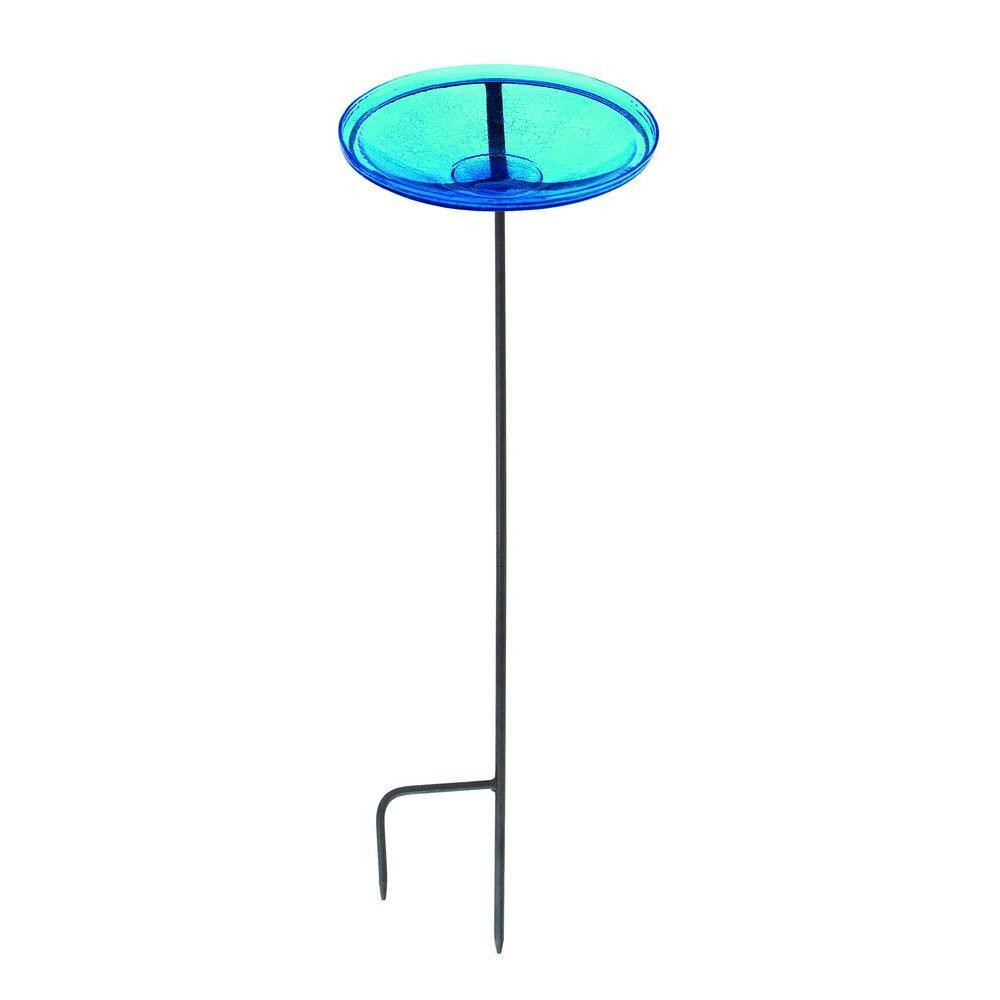 Achla Designs 14 in. Dia Teal Blue Reflective Crackle Glass Birdbath Bowl with Stake