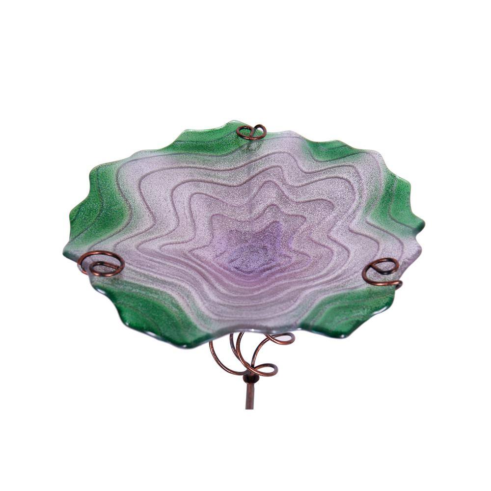 Evergreen Purple and Green Glitter Glass Birdbath with Garden Stake