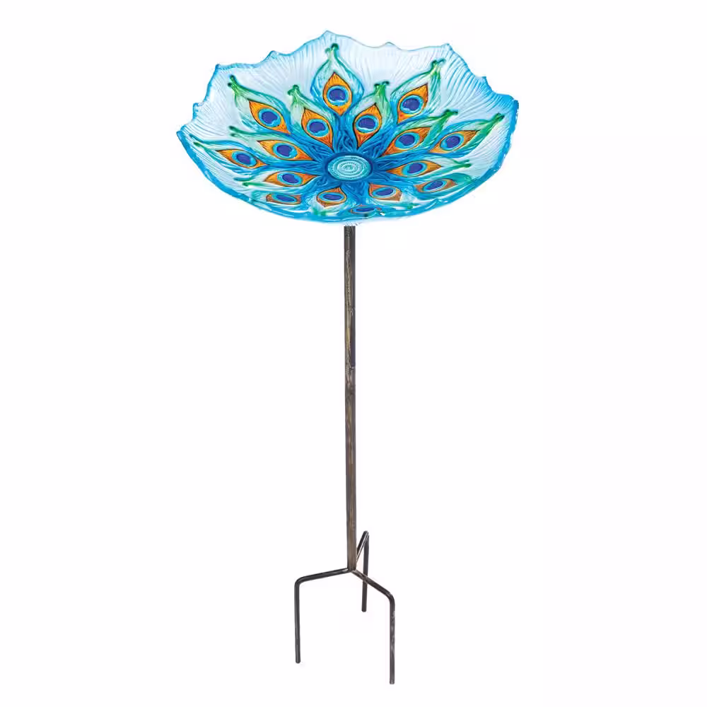 Teamson Home Outdoor 18 in. Solar Glass Birdbath - Peacock