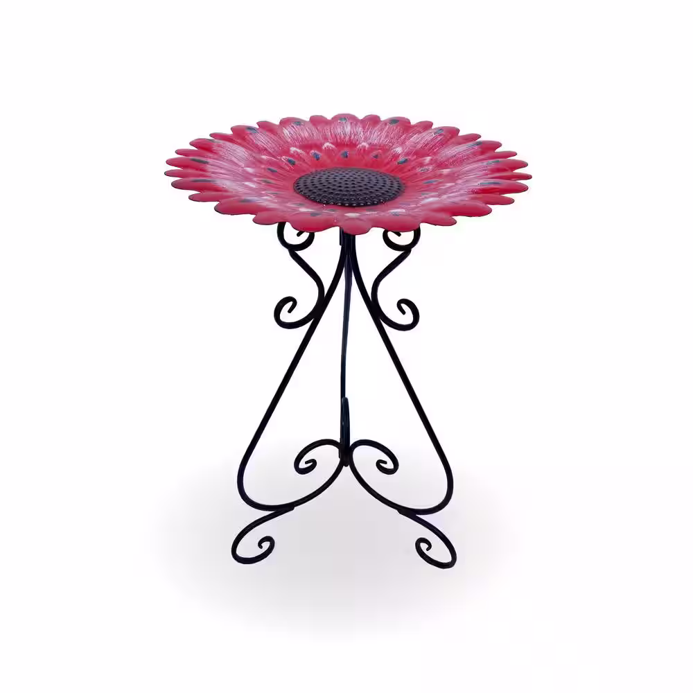 None 18 in. Solar Flamingo LED Verdant Glass Bird Bath with Stand