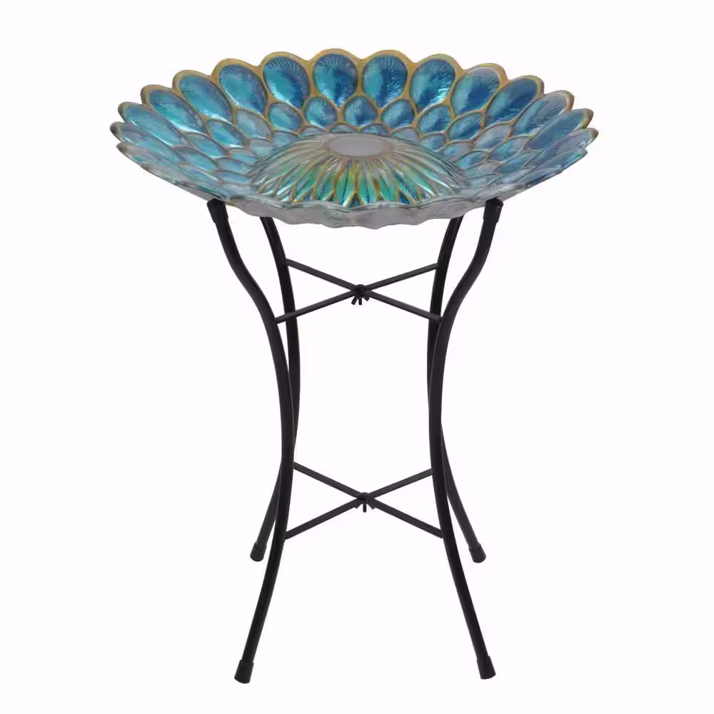 Teamson Home 18 in. Glass Outdoor Fusion Solar Birdbath