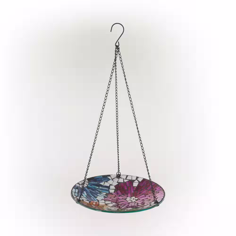 Alpine Corporation 10 in. Round Glass Mosaic Floral Hanging Birdbath, Multicolor