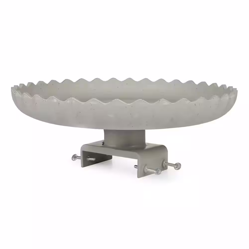 None 120-Watt Outdoor Stone Scalloped Heated Birdbath with Deck Mount, Gray
