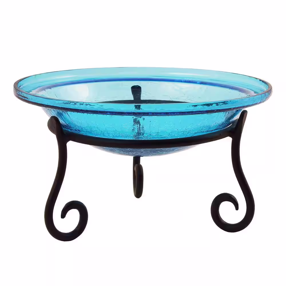 Achla Designs 12.5 in. Dia Teal Blue Reflective Crackle Glass Birdbath Bowl with Short Stand