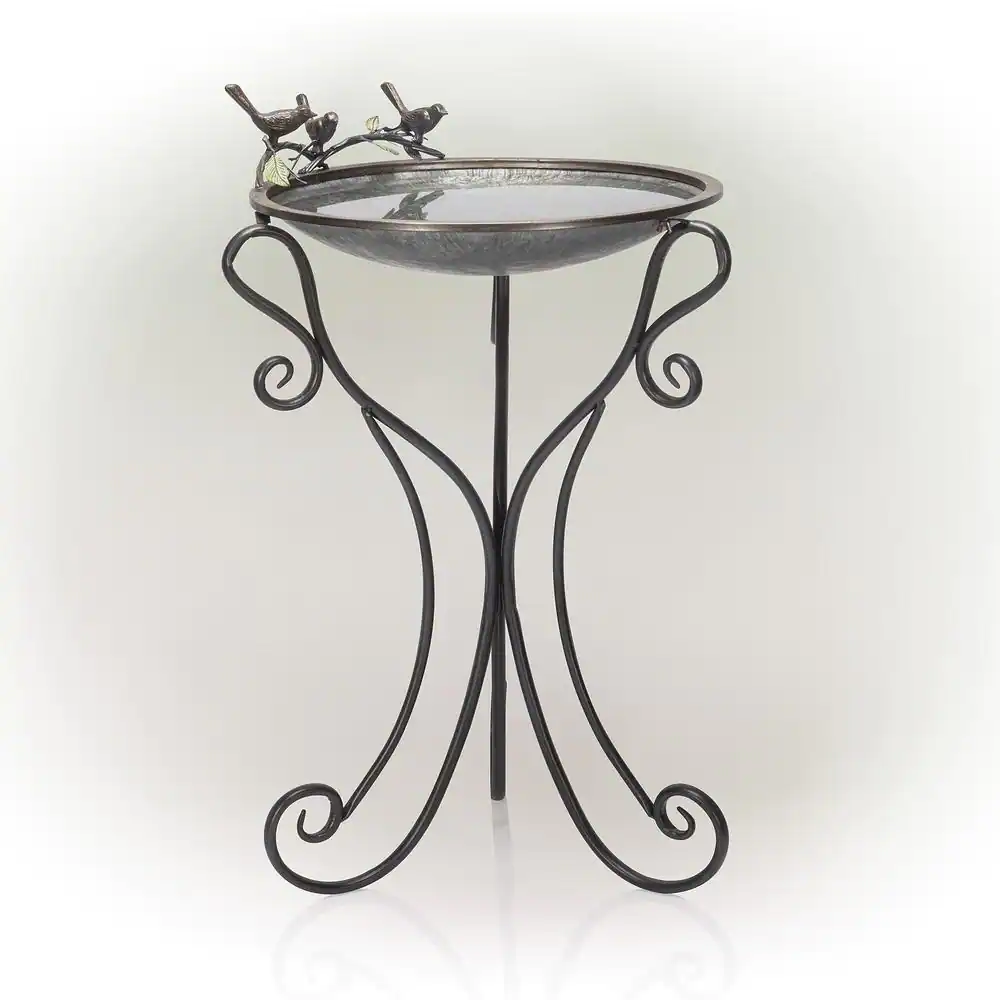 Alpine Corporation 23 in. Tall Outdoor Metal Bird Bath Stand Decor Accessory, Black