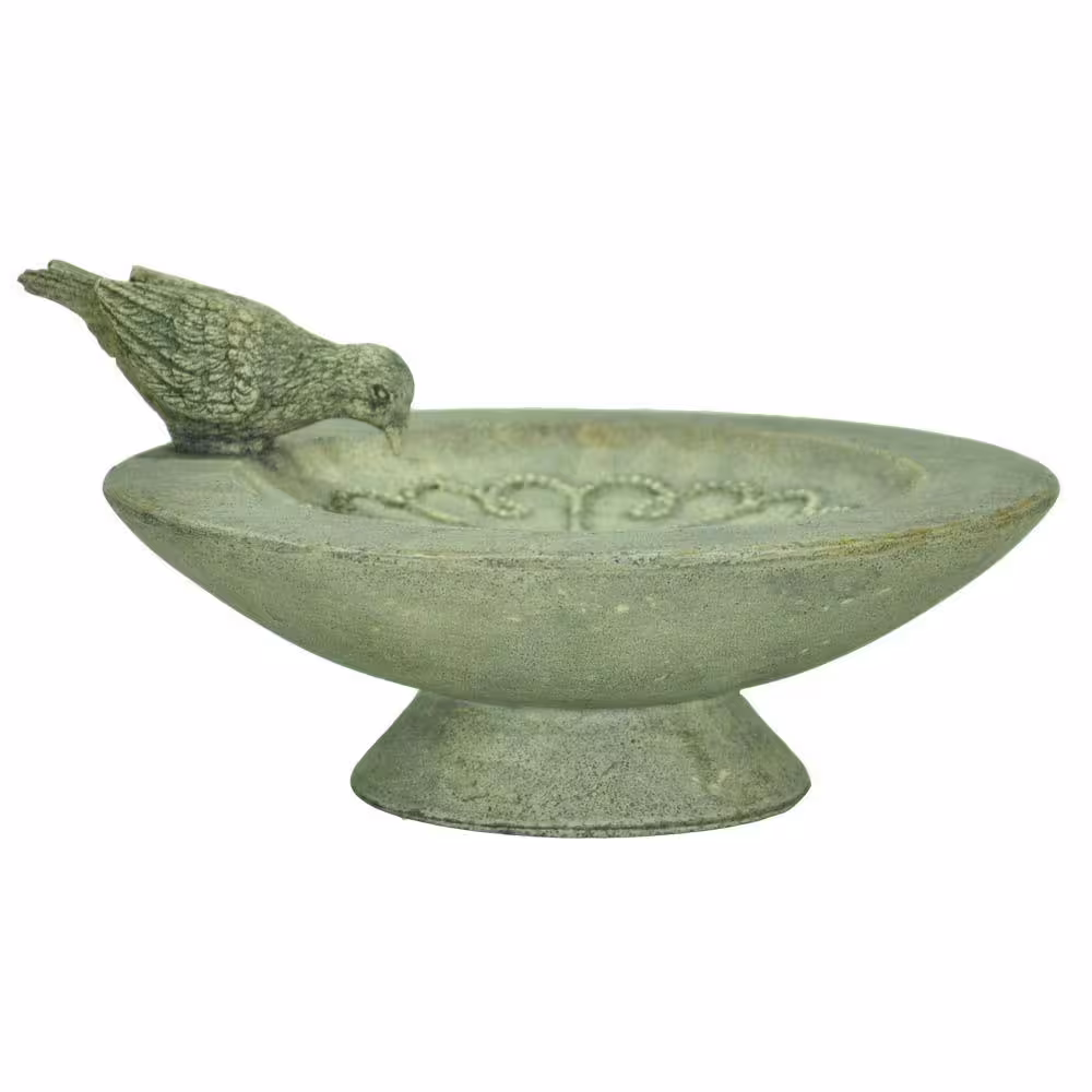 MPG 12 in. Dia Cast Stone Fiberglass Table Birdbath