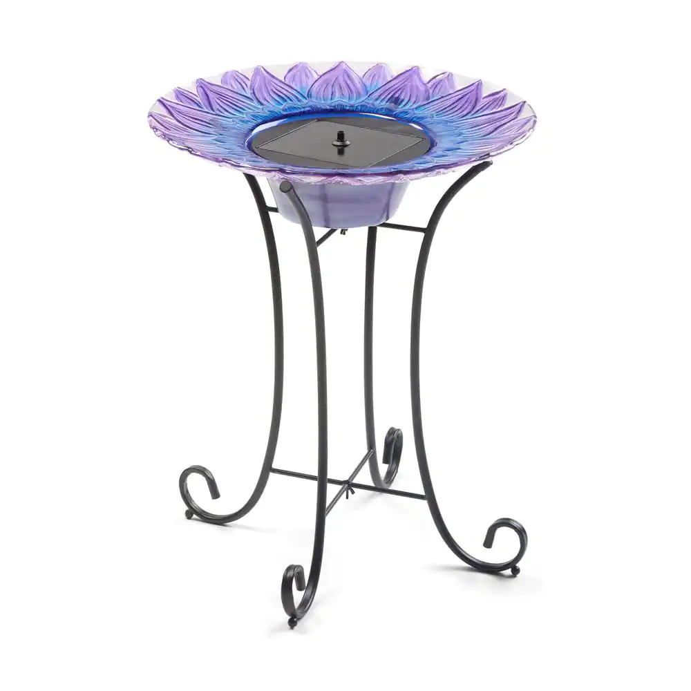 Teamson Home 18 in. Glass Outdoor Fusion Mosaic Flower Birdbath with Stand