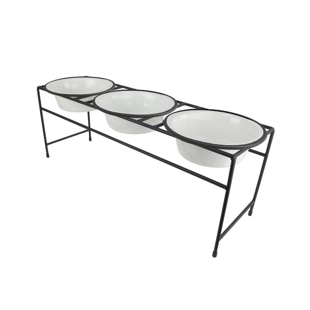 Platinum Pets Modern Triple Diner Feeder with Stainless Steel Cat/Dog Bowls, Pearl White