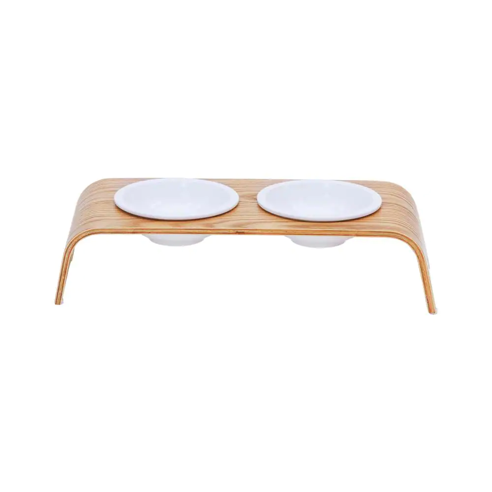 TEAMSON PETS Billie 4.5 in. Tall Elevated Ash Wood Pet Food and Water Feeder Stand with Non-Slip Grips and Ceramic Safe Bowls, Brown