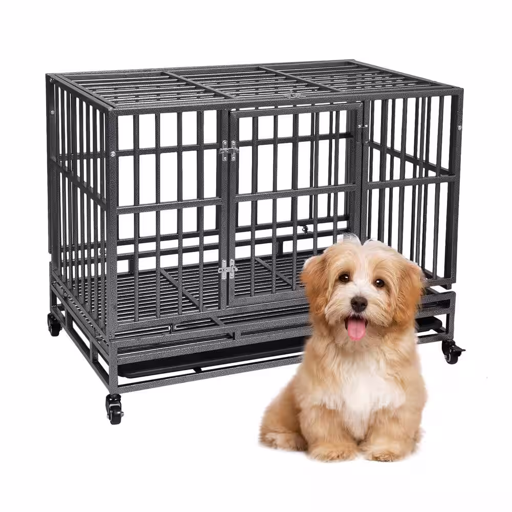COZIWOW 3 ft. L x 2 ft. W x 2.5 ft. H Dog Crate Kennel with Tray and Wheels, Openable Top