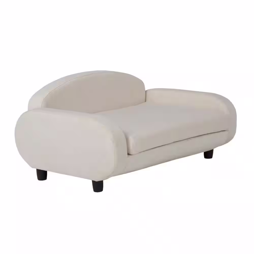 Paws & Purrs 31.5 in. Modern Pet Sofa for Small to Medium Dog or Cat in White Oatmeal with Removable/Washable Mattress Bed