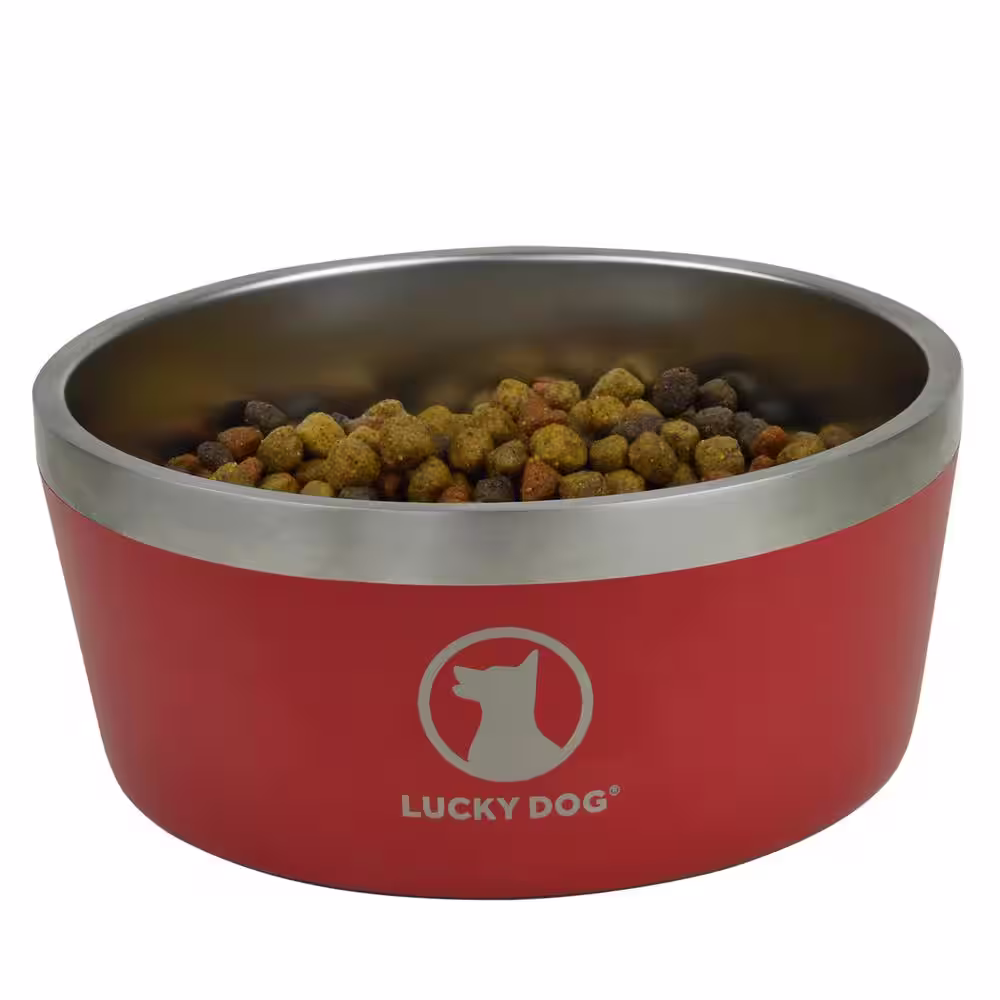 Lucky Dog INDULGE 64 oz. 8 Cup Double Wall Stainless Steel Dog Bowl, Non Slip, Lifetime Warranty in Red
