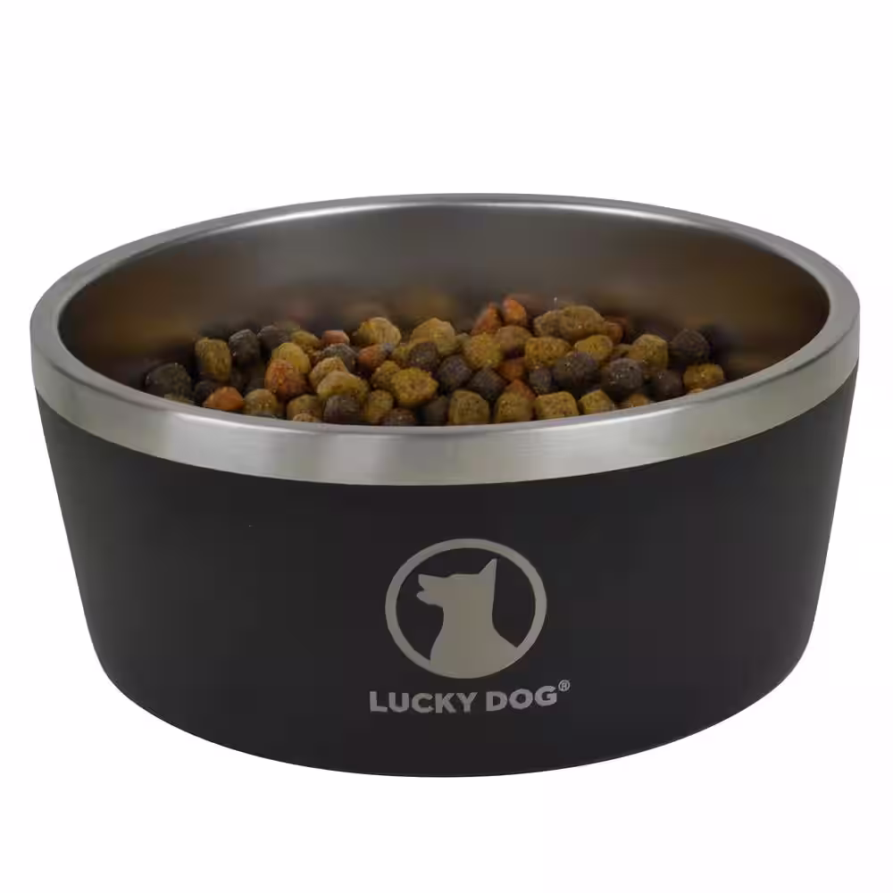 Lucky Dog INDULGE 64 oz. 8 Cup Double Wall Stainless Steel Dog Bowl To Non Slip To Lifetime Warranty in Black