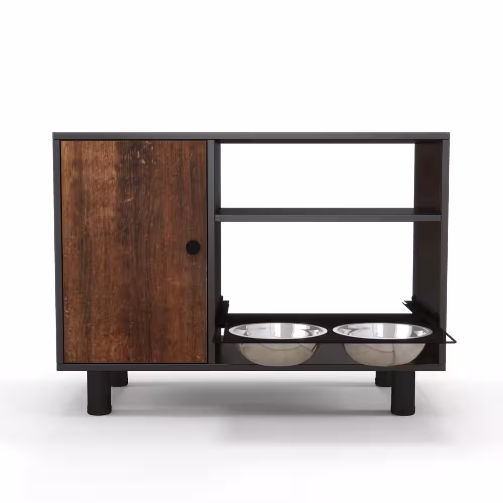 None Large Dog Food Storage Cabinet Pet Feeder Station Stainless Double Pull Out Raised Dog Bowls Feeding Watering Supplies