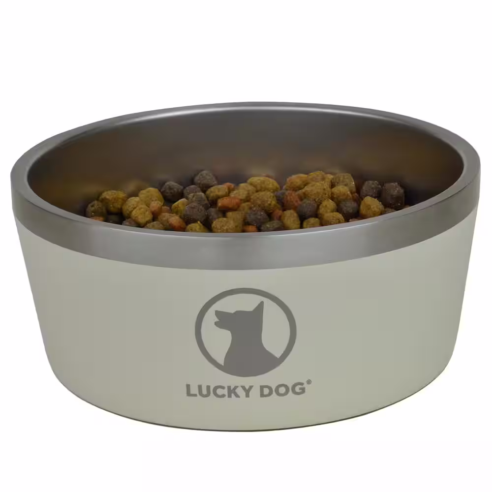 Lucky Dog Indulge 100 oz. 12.5 Cup Double Wall Stainless Steel Dog Bowl, Non Slip, Lifetime Warranty in Beige