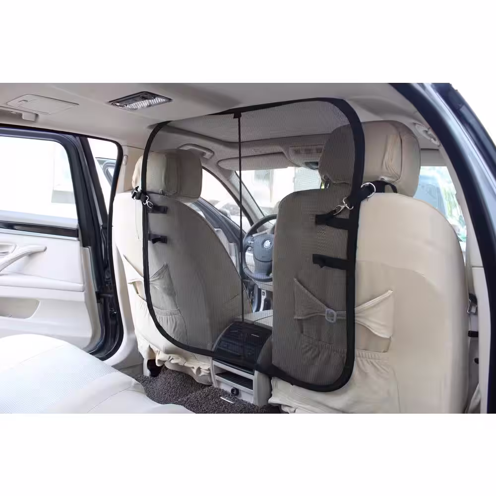 PET LIFE Easy Hook Protective Mesh Folding Backseat Car Seat Safety Barrier For Dogs Cats and Children
