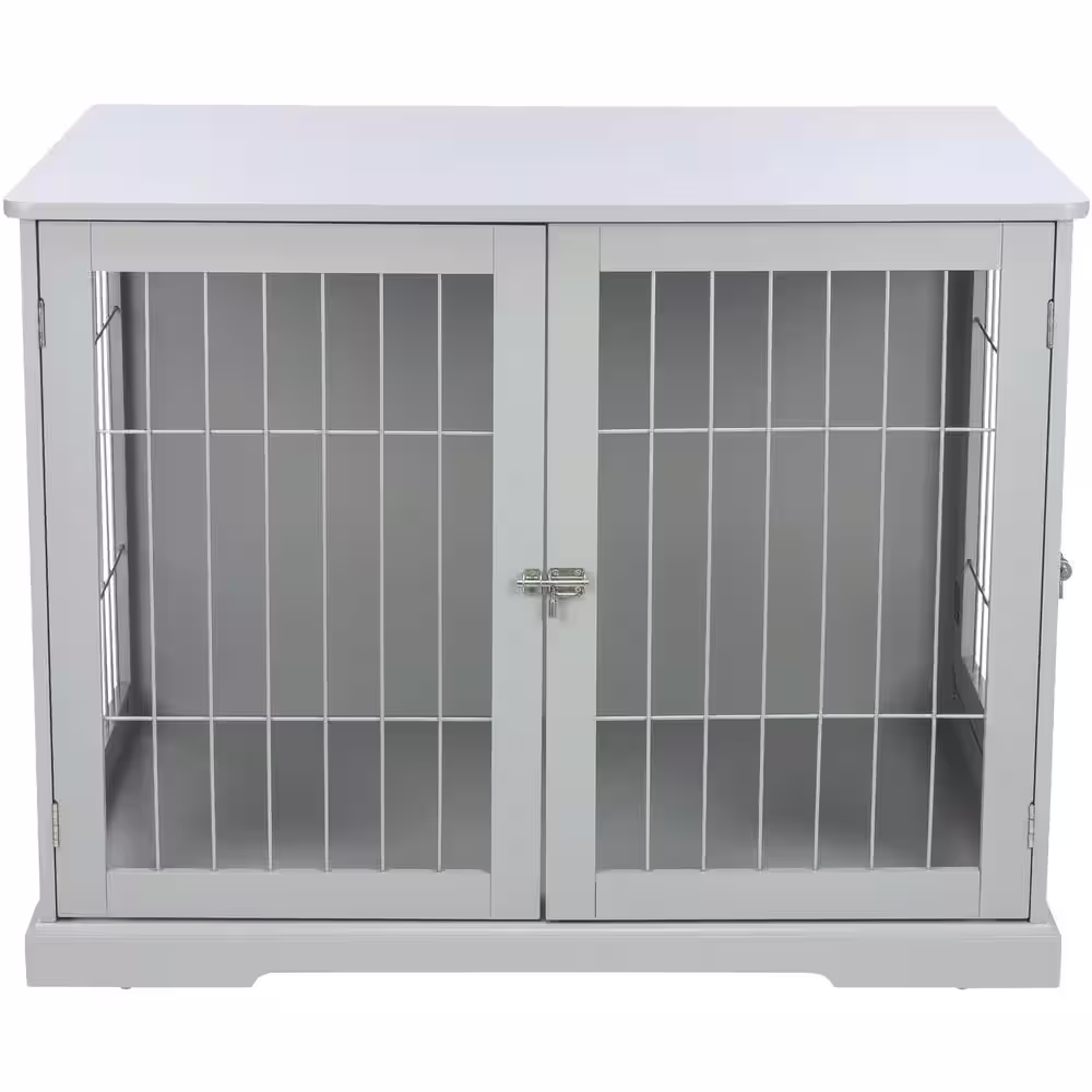 TRIXIE Furniture Style Dog Crate, Indoor Kennel, Pet Home, End Table or Nightstand with 2-Doors, Gray, Large