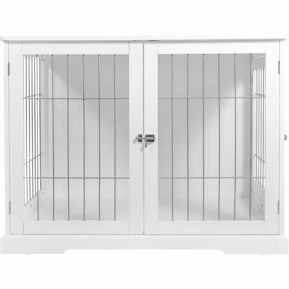 TRIXIE Furniture Style Dog Crate, Indoor Kennel, Pet Home, End Table or Nightstand with 2-Doors, White, Small