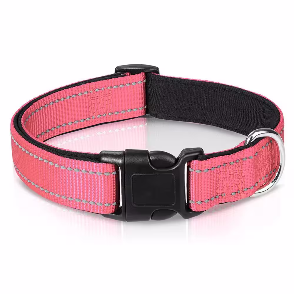 None Reflective Dog Collar Soft Breathable Nylon Pet Collar Adjustable for Large Dogs, Hot Pink, L