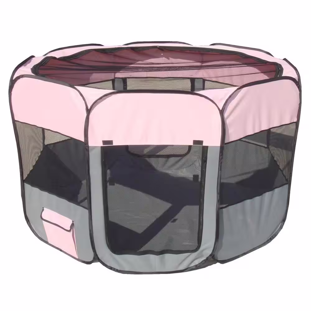 PET LIFE All-Terrain Lightweight Easy Folding Wire-Framed Collapsible Travel Dog Playpen in Pink/Grey - LG