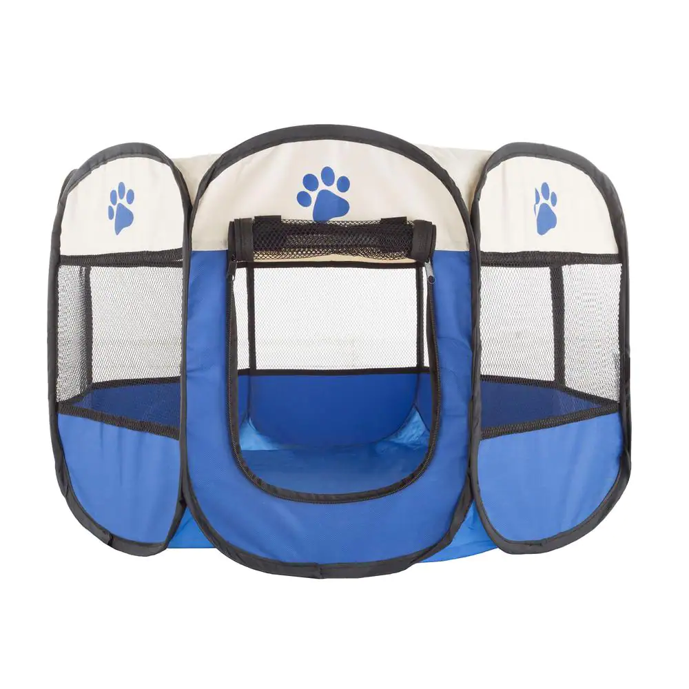 Petmaker 26.5 in. x 26.5 in. Portable Pop Up Pet Play Pen with Carrying Bag in Dark Blue