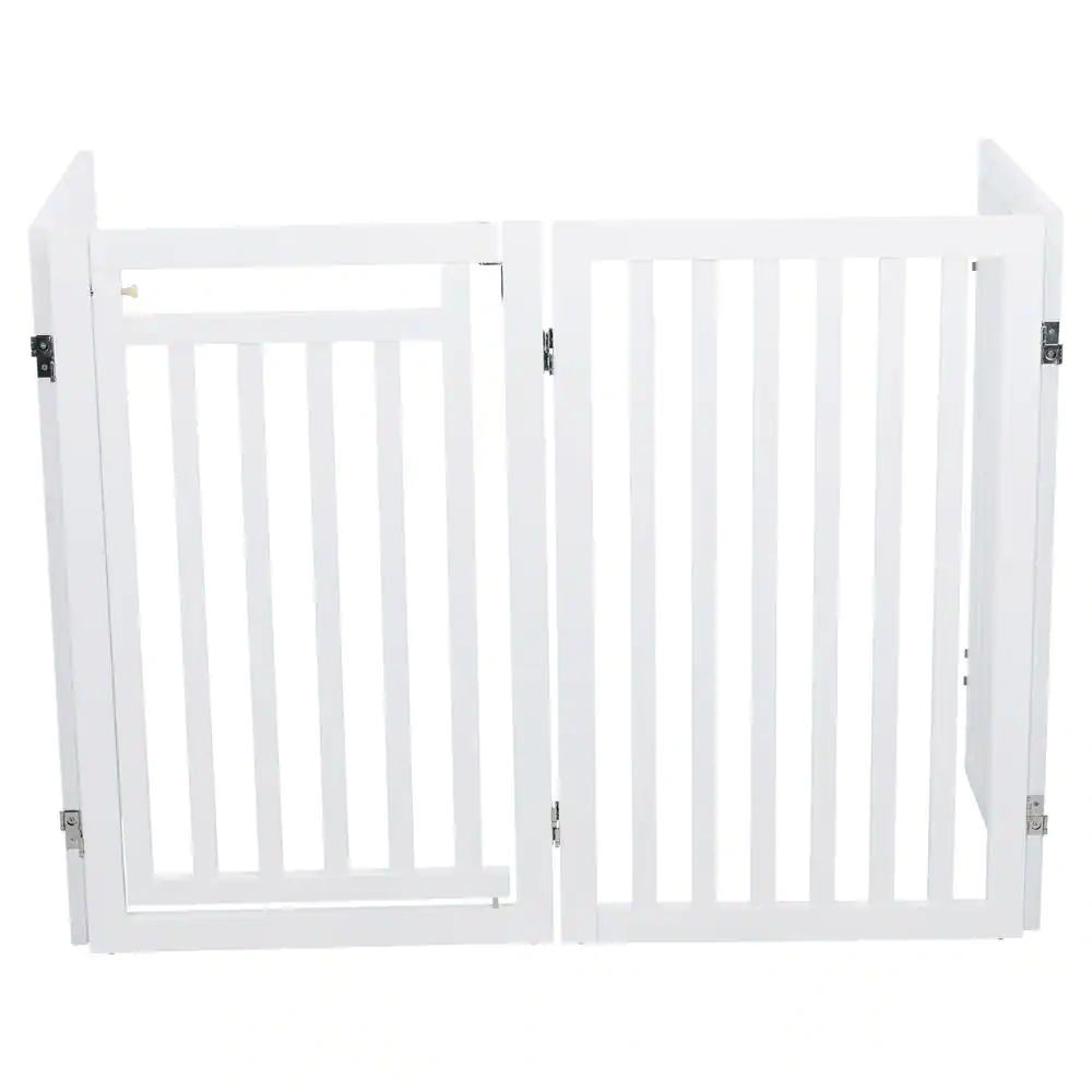 Petmaker 4-Panel Wooden Freestanding Folding Pet Gate in White