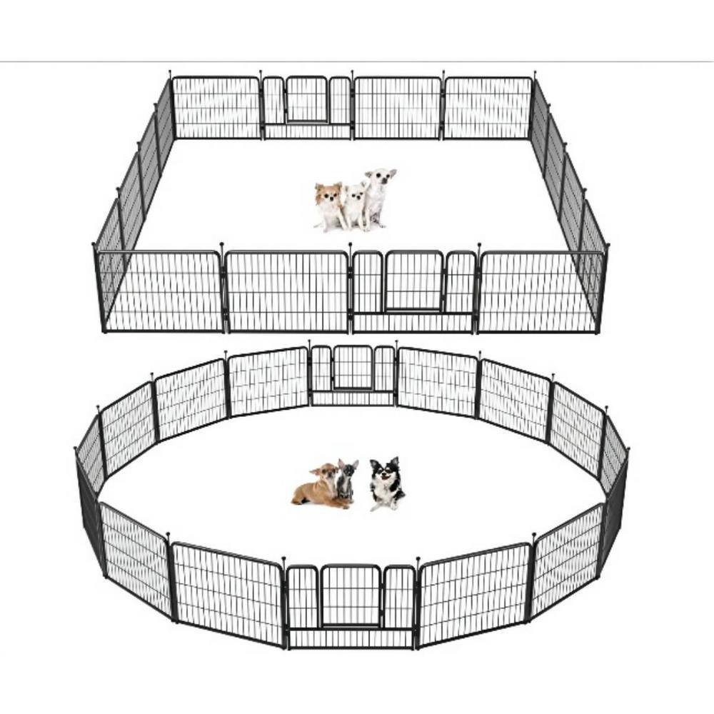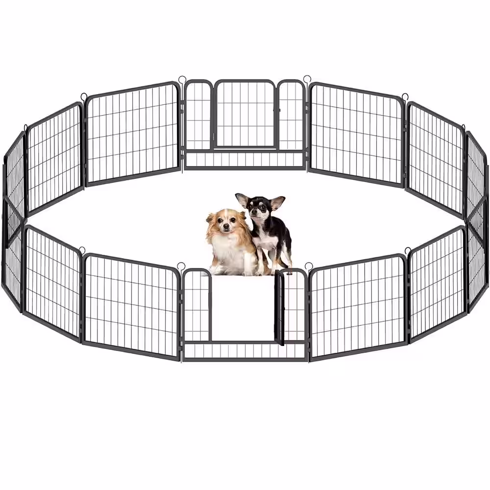 Tatayosi Coverage Area 0.002-Acre Wireless Portable Outdoor 16-Panel Black Metal Dog Playpen Pet Fence