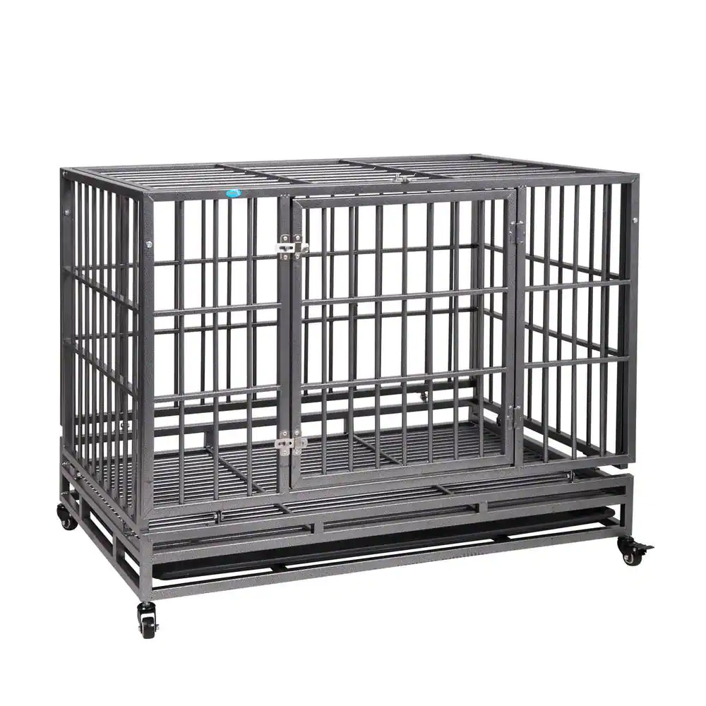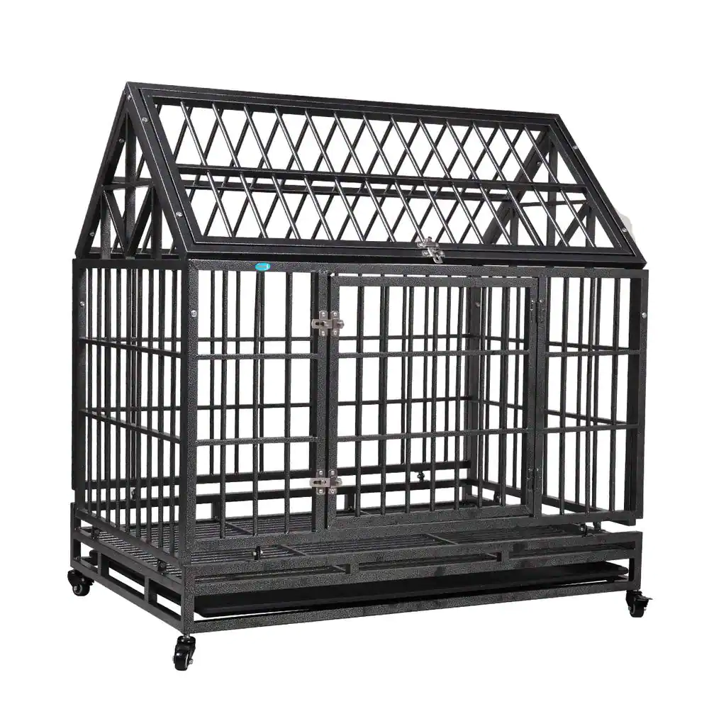 COZIWOW 3.5 ft. L x 2.3 ft. W x 3.6 ft. H Heavy Duty Dog kennel Crate with 4 Wheels and Tray