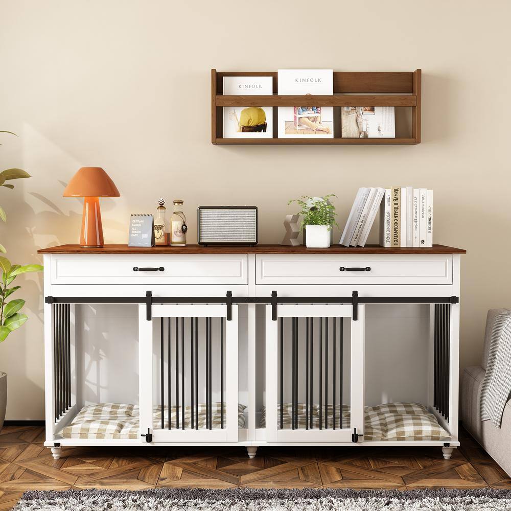 None Dog Crate Furniture Large TV Stand with Drawe 2 Sliding Doors, Dog Kennels Crates for Medium Large Dogs with Divider