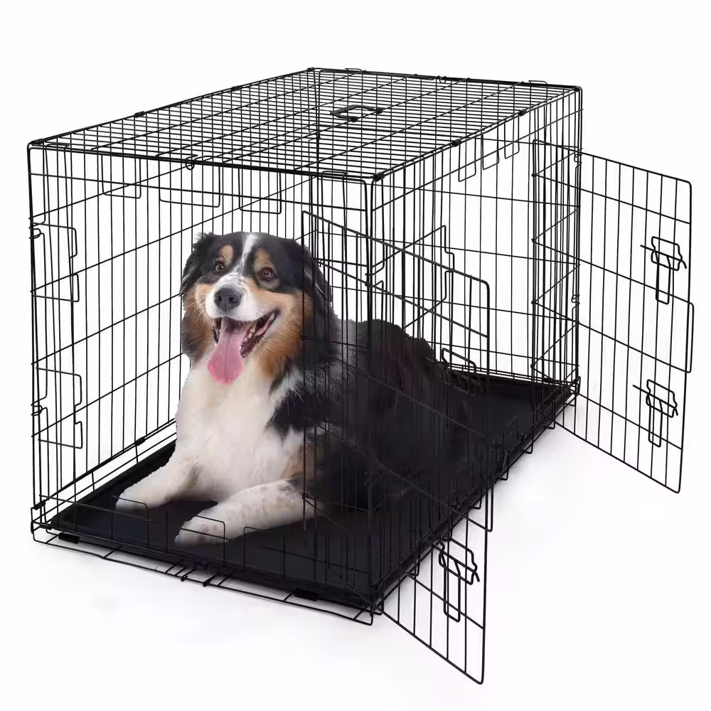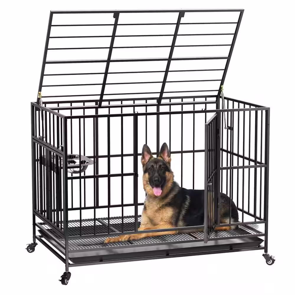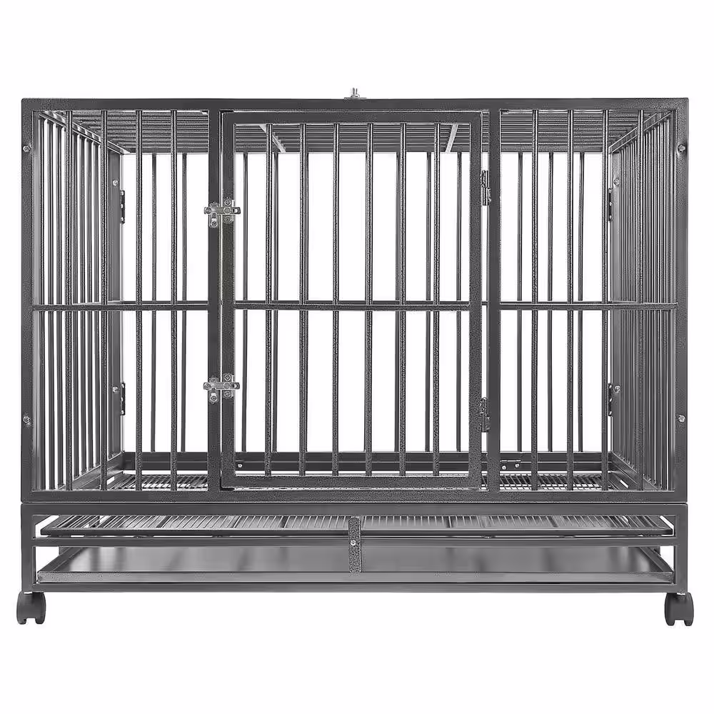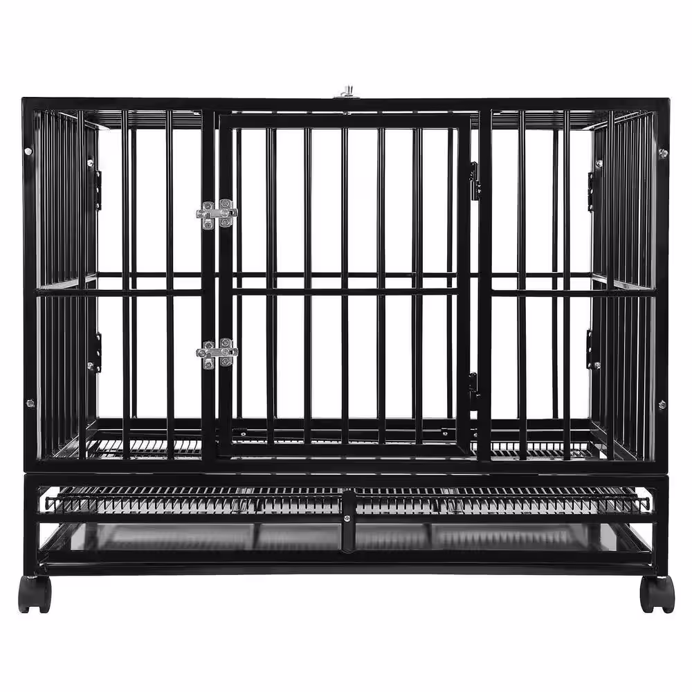 SMITHBUILT Heavy-Duty Metal Dog Cage in Black - Large 42 in.