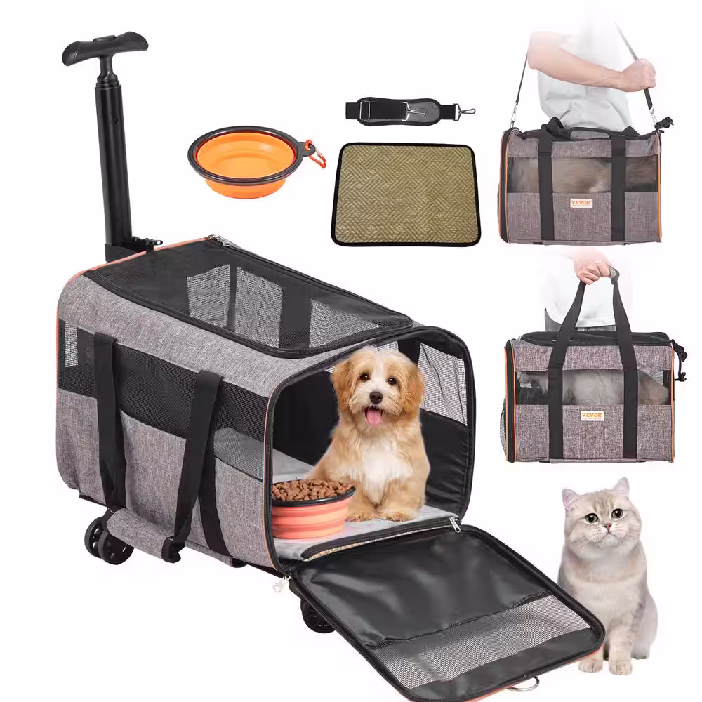 VEVOR Cat Dog Carrier with Wheels Airline Approved, Rolling Pet Carrier on Wheels Hold up to 22 lbd.