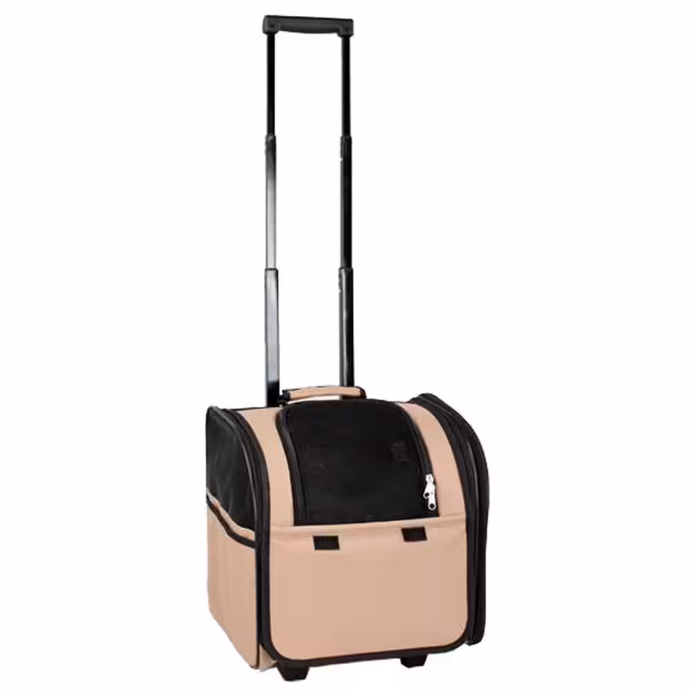 PET LIFE Brown Wheeled Travel Pet Carrier with Side Pouch and Leash Holder - 1-Size