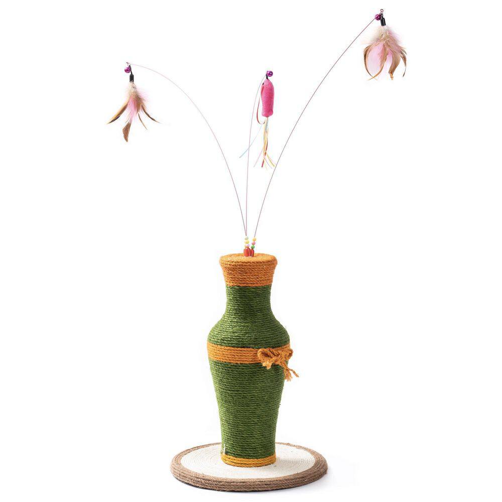 Tatayosi 11.8 in. x 16.5 in. Grass Green Vintage Vase-shaped Cat Scratching Post with 3 Feather Toys