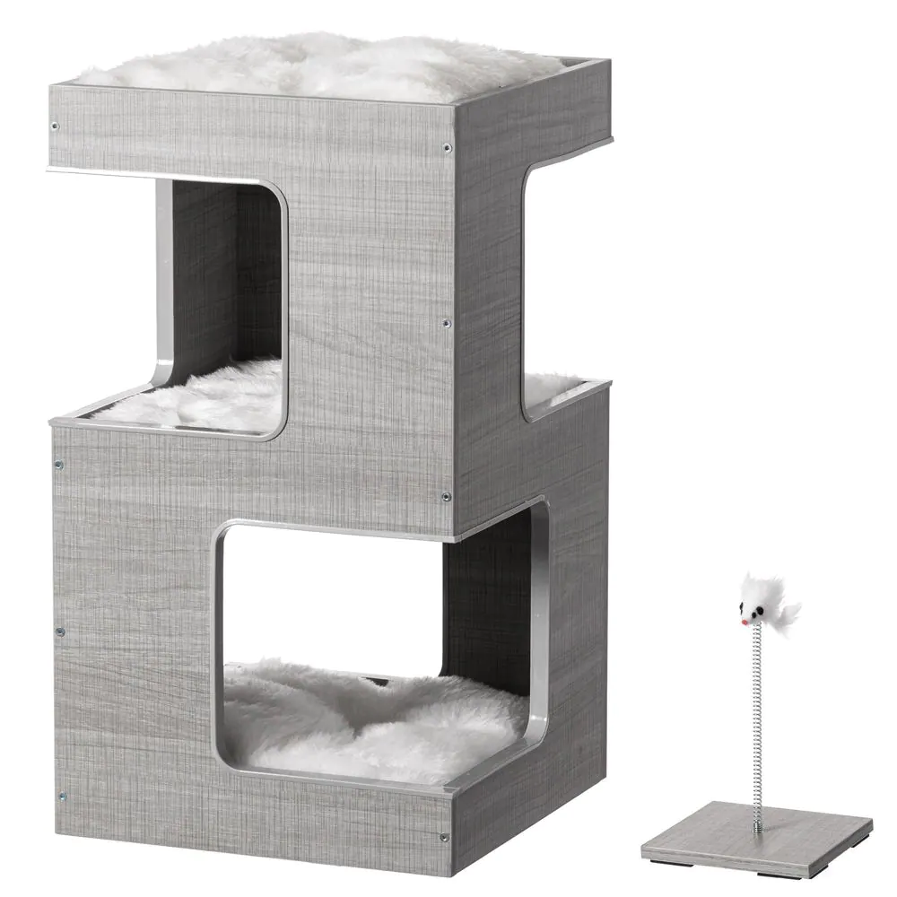 PAWSMARK Multi Level Modern Cat Tall Climbing Tree House for Indoor Cats : Wood Tower Stand with Removable Soft Blanket and Condo