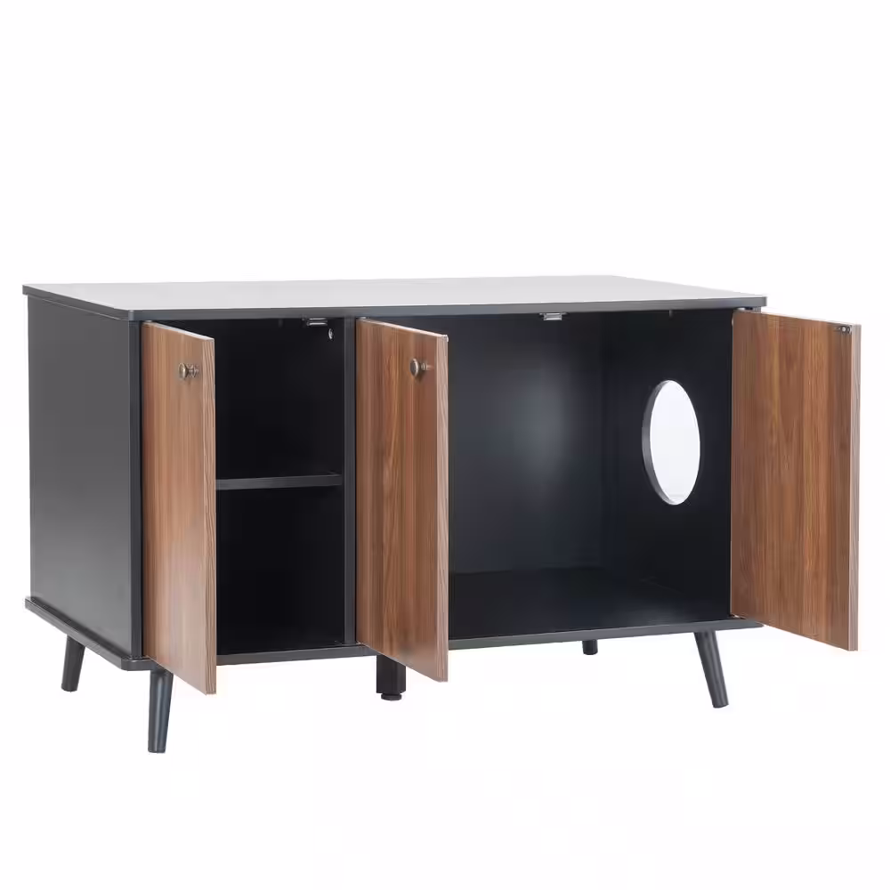 None 39.4 in. W Litter Box Enclosure Cat Litter Box Furniture with Hidden Plug 3 Doors Cat Washroom Storage Bench Side Table