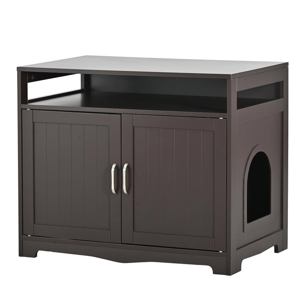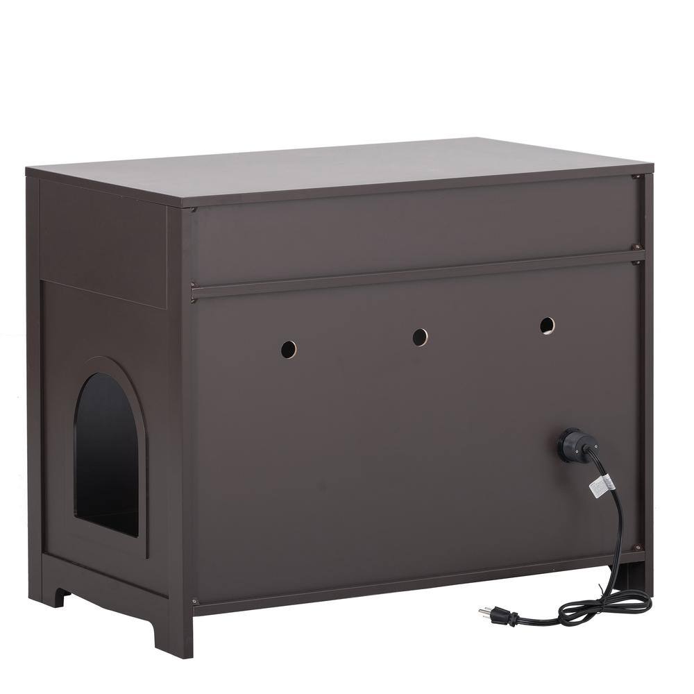 None Litter Box Enclosure Cat Litter Box Furniture with Hidden Plug 2 Doors Cat Washroom Storage in Dark Brown