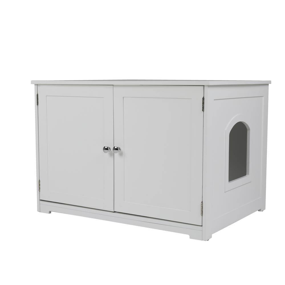 None 29.5 in. W x 21 in. D x 20.5 in. H Wooden Cat Litter Box with 2 Doors in White