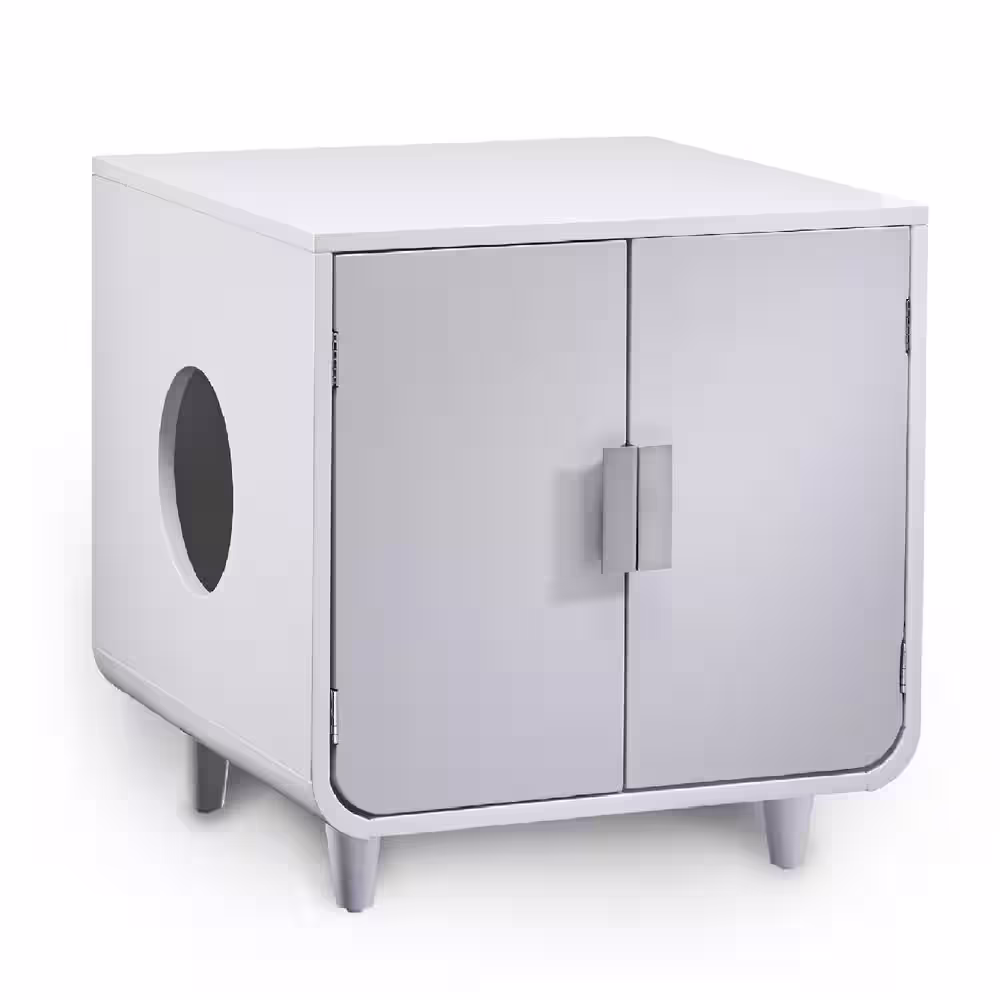 TEAMSON PETS Dyad Alpine White Wooden Cat Litter Box