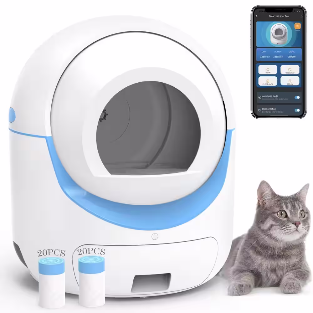 None 25 in. H Self Cleaning Cat Litter Box Automatic Cat Litter Box for Cat in White plus Blue