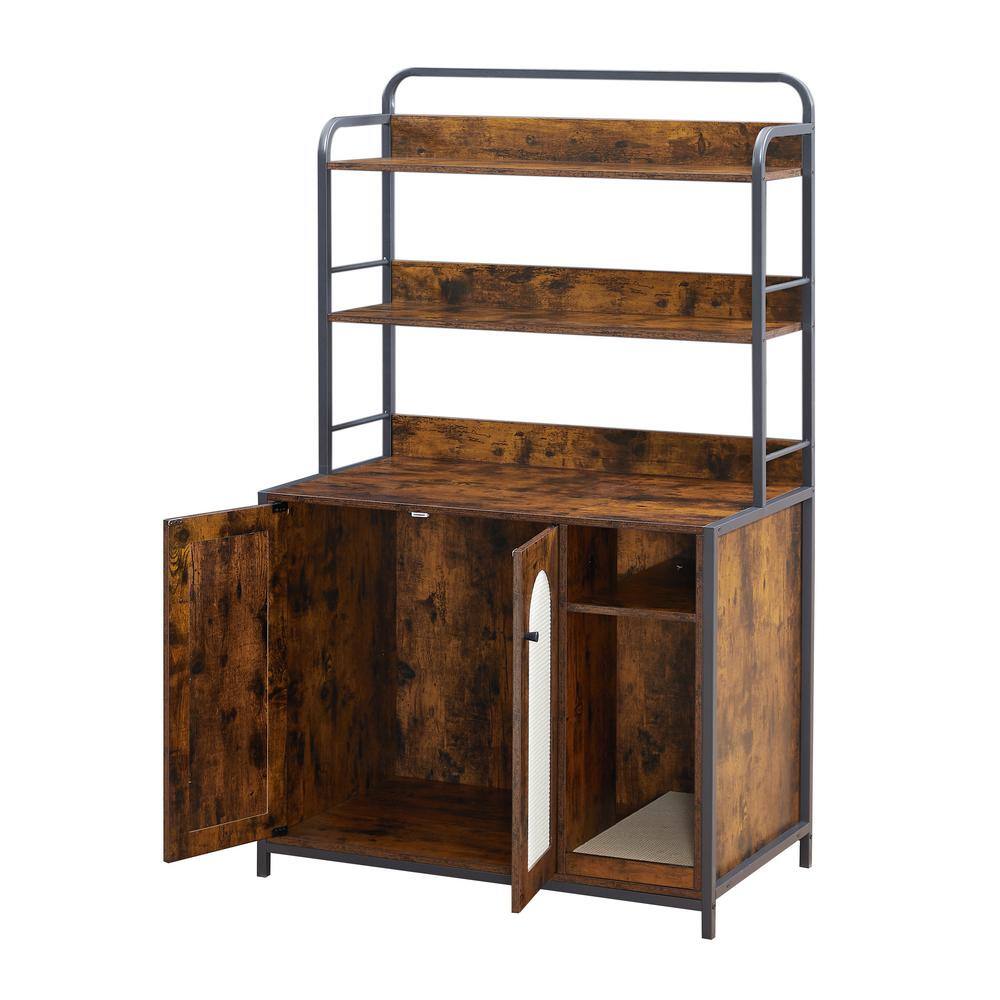 ANGELES HOME Walnut Black 35.5 in. x 20 in. MDF Cat Litter Box Enclosure