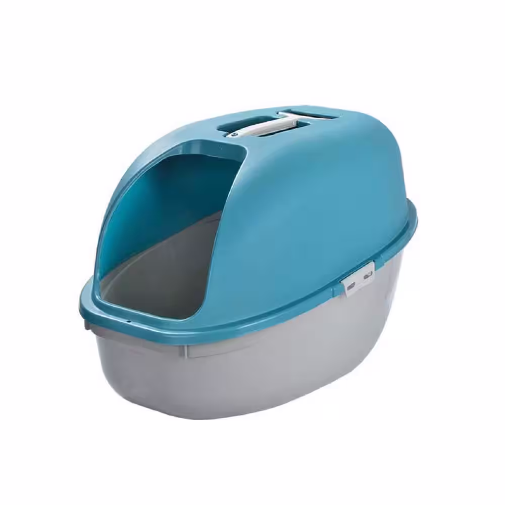 Rimax Plastic Hooded Cat Litter Box with Scoop 22.3 in. x 14.33 in. in Gray and Turquoise